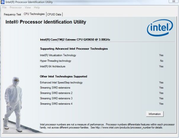 Today brought the discovery that Intel provides a program called “Processor Identification Utility” on their web site for download. As part of this program it identifies the processor as well as features like VT. Given that they created the cores and are updating the PIU (Processor Identification Utility) to match, it should be a good place to start.